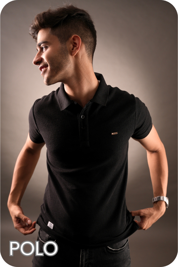 Everyone needs a staple like this Textured Polo Black T-Shirt in their wardrobe. This T-shirt...