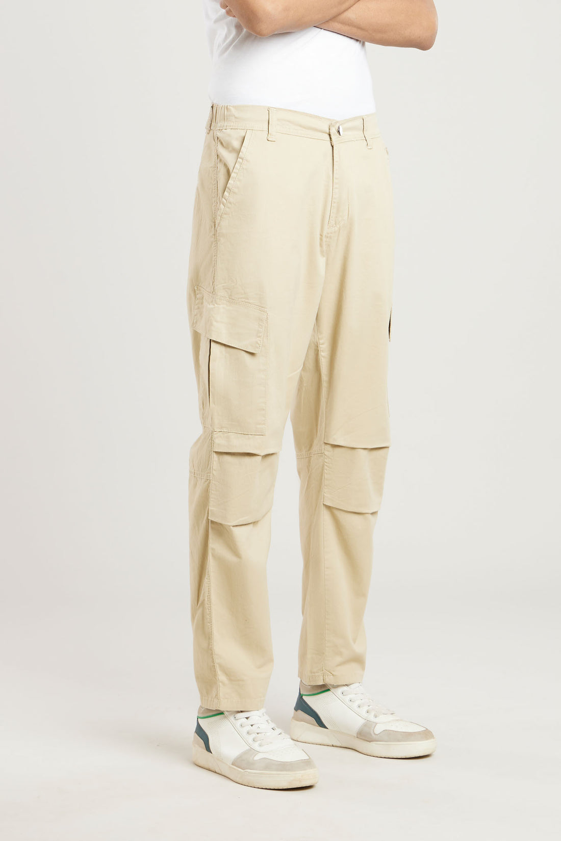 Regular-fit cargo trousers in cotton twill with sewn-in pleats at the knees. Covered elastication at...
