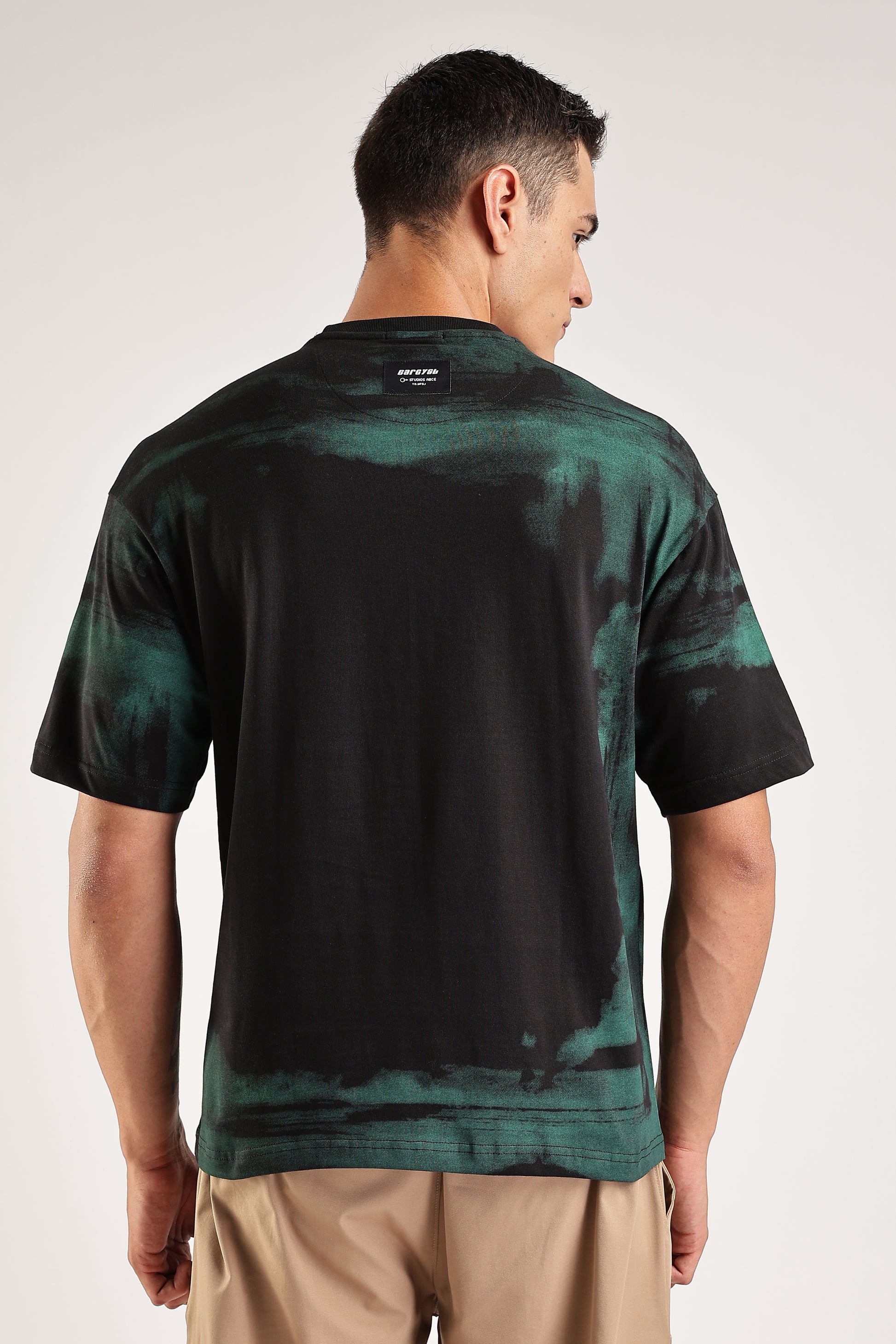 What’s better than an ink-spilled T-shirt? One that’s intentional, artistic, and effortlessly stylish. This oversized tee features an abstract dye pattern that blends deep black with rich green tones, creating a bold, blackout vibe. Crafted for comfort and statement-making style, it’s the perfect fusion of streetwear and modern art