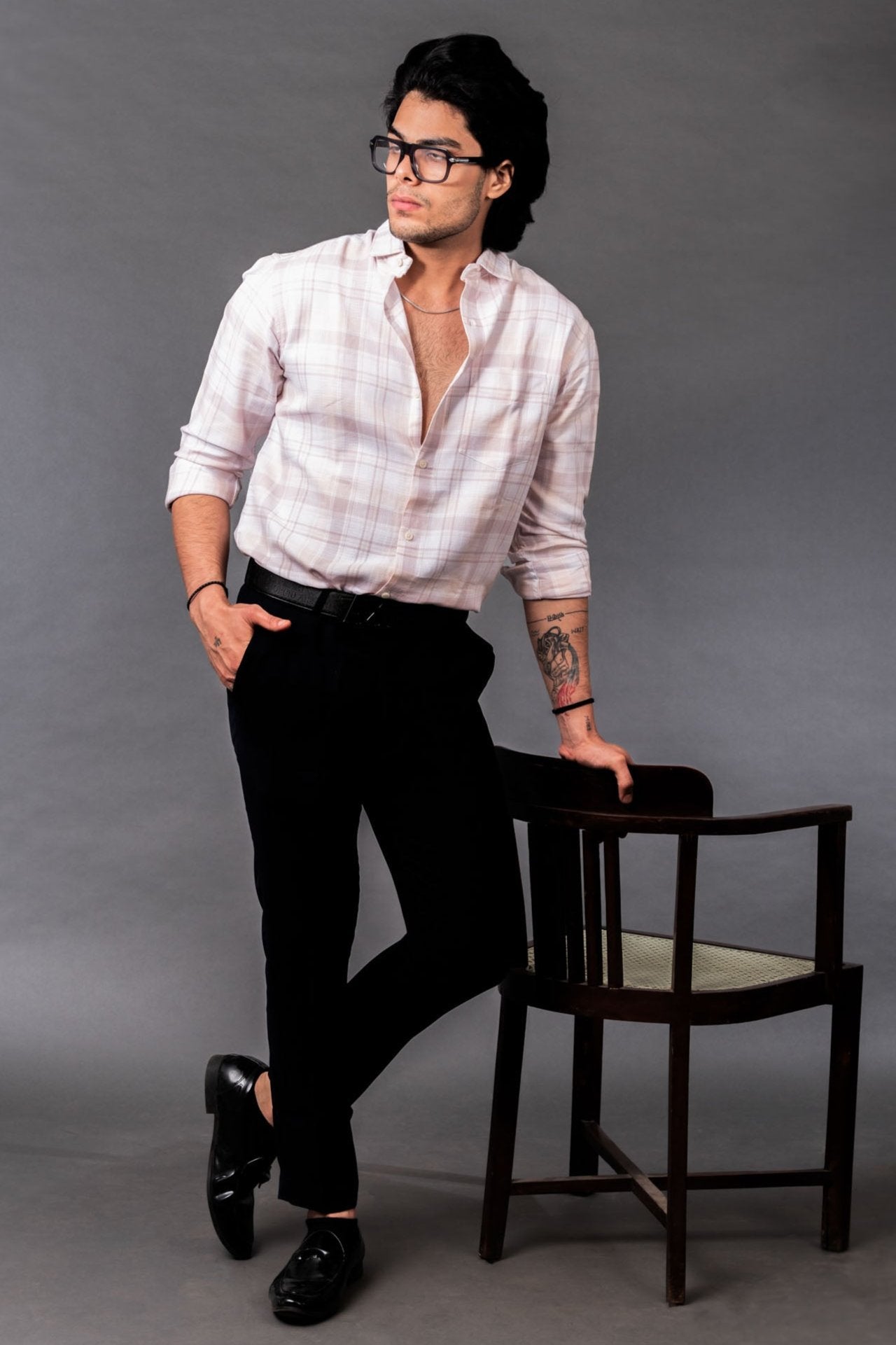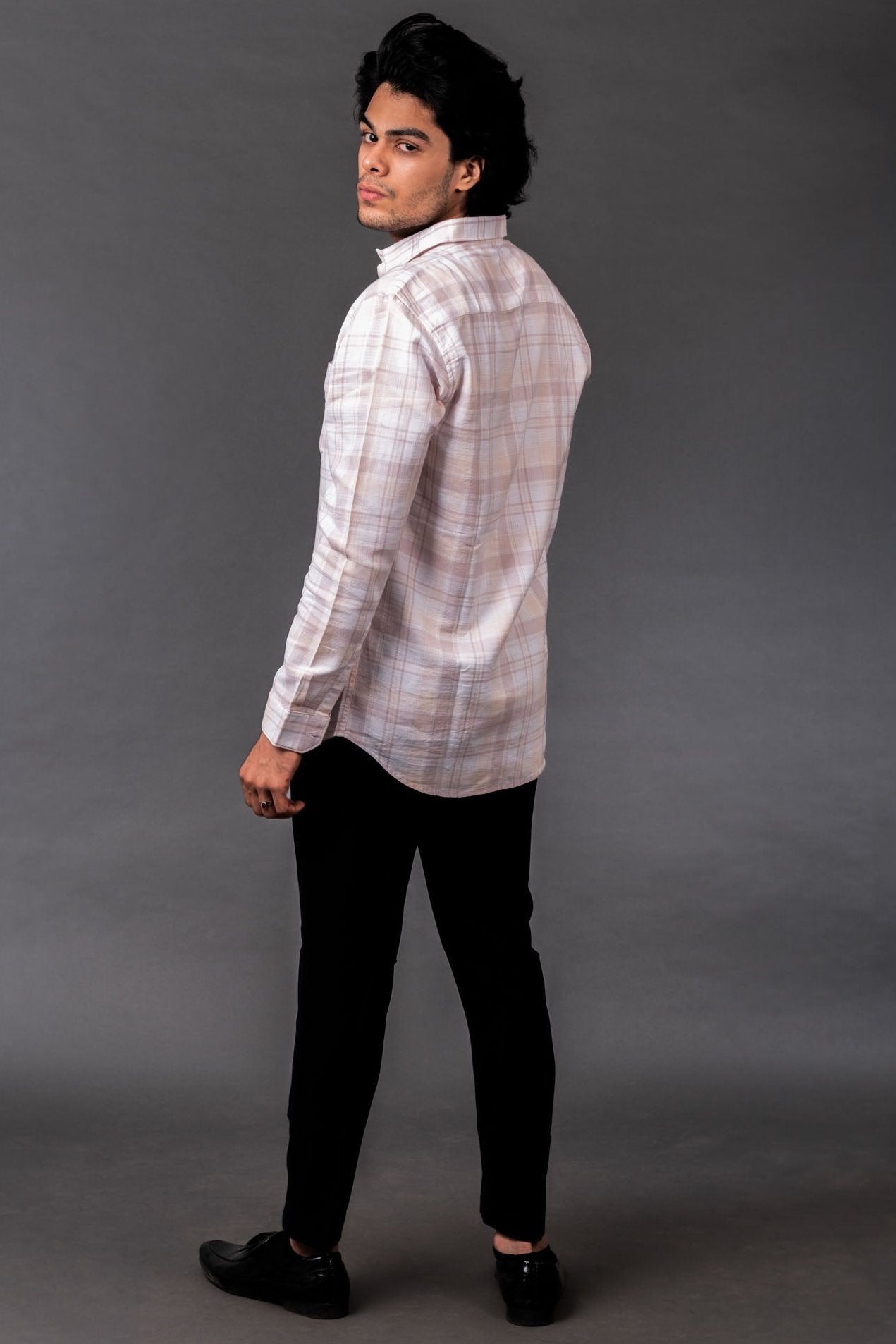 Give a majestic lift to your look with this Plaid Check Lilac Shirt The shirt is crafted from fine 100% cotton. It is a versatile staple and great for teaming with jeans for a more casual look or smartening up with a classic pair of chinos.