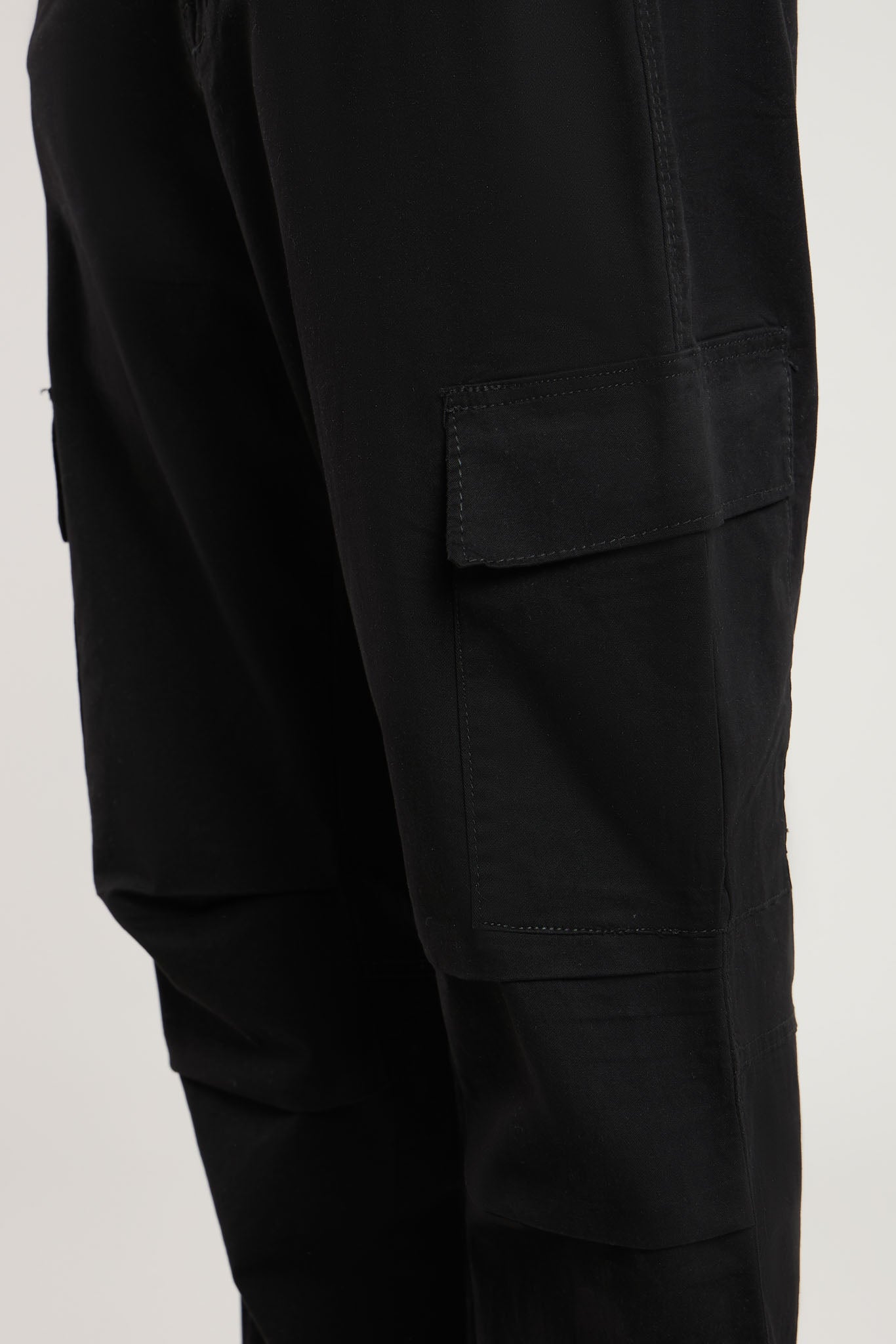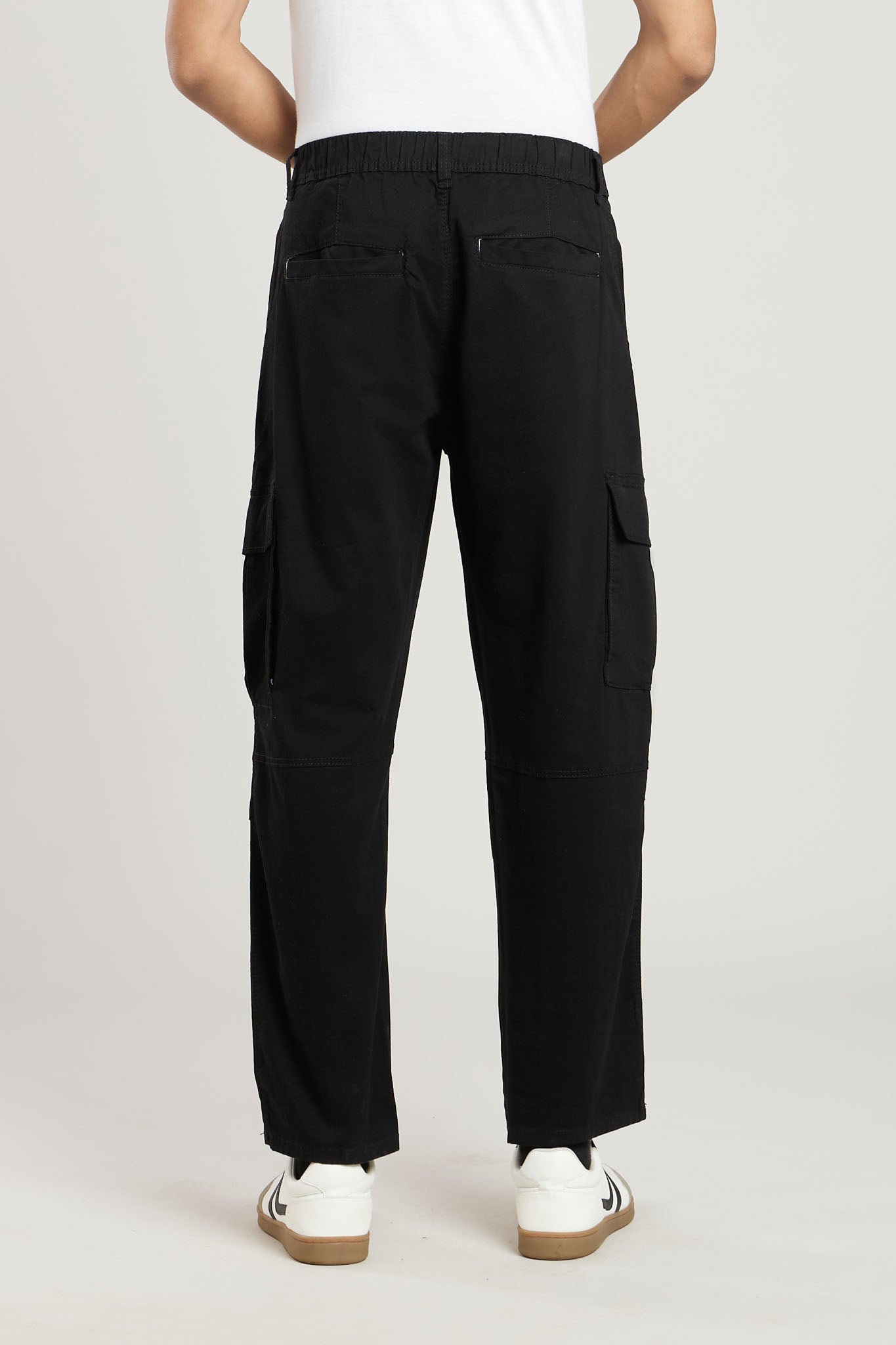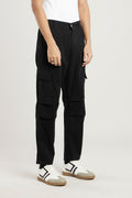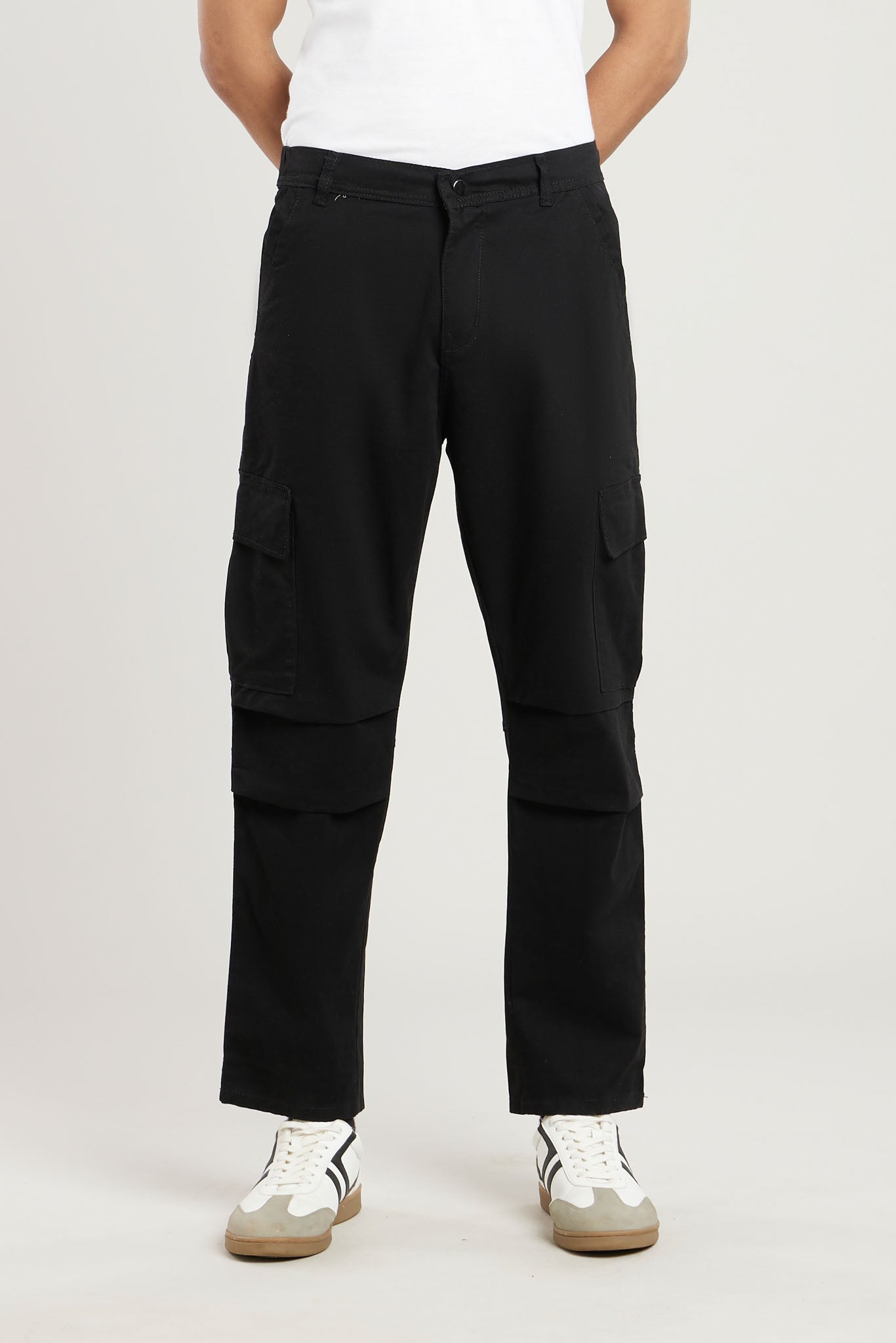 Regular-fit cargo trousers in cotton twill with sewn-in pleats at the knees. Covered elastication at the back of the waist, zip fly and a press-stud. Welt side pockets with a press-stud, bellows leg pockets with press-studs and welt back pockets.