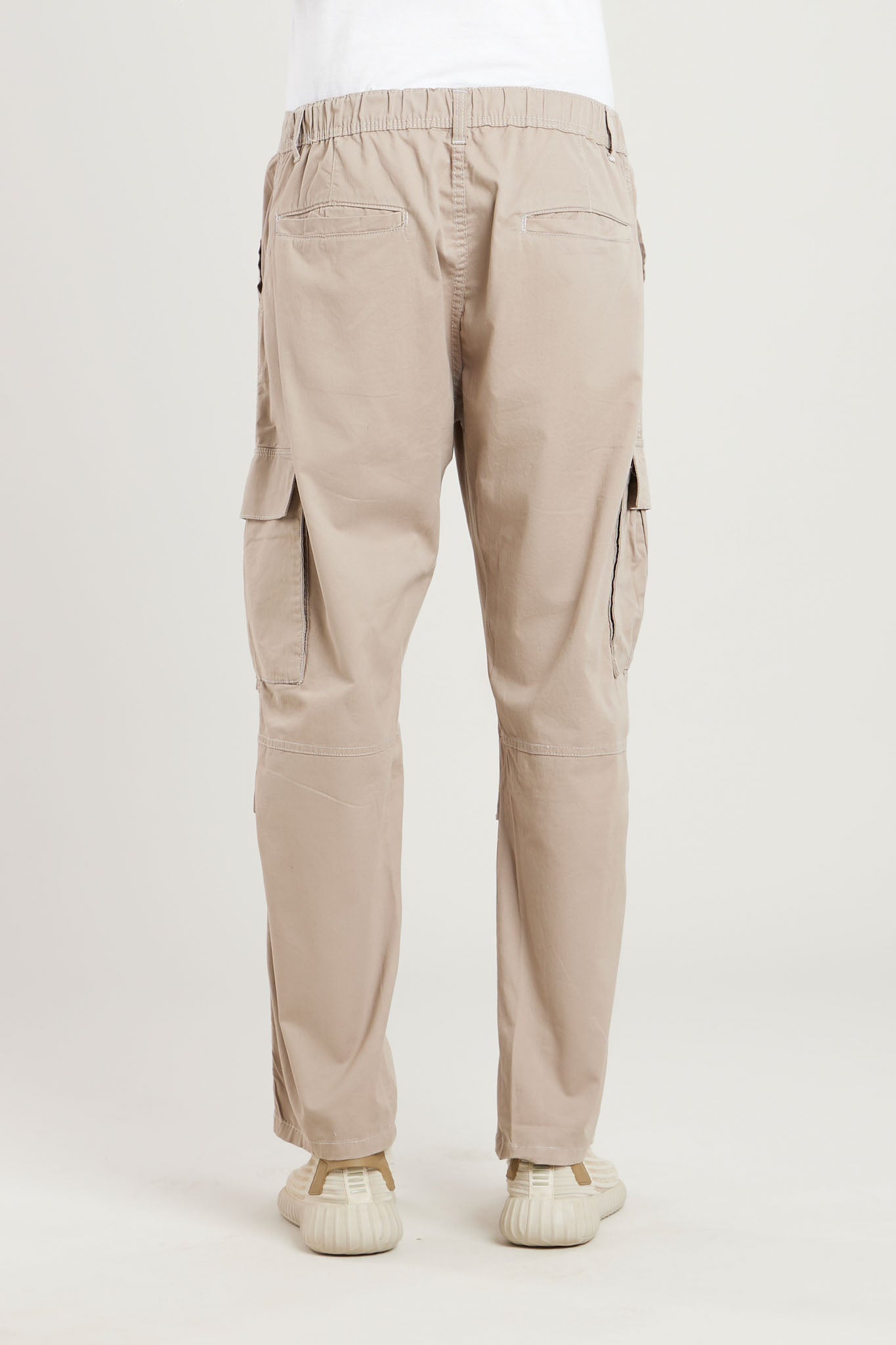 Regular-fit cargo trousers in cotton twill with sewn-in pleats at the knees. Covered elastication at the back of the waist, zip fly and a press-stud. Welt side pockets with a press-stud, bellows leg pockets with press-studs and welt back pockets.