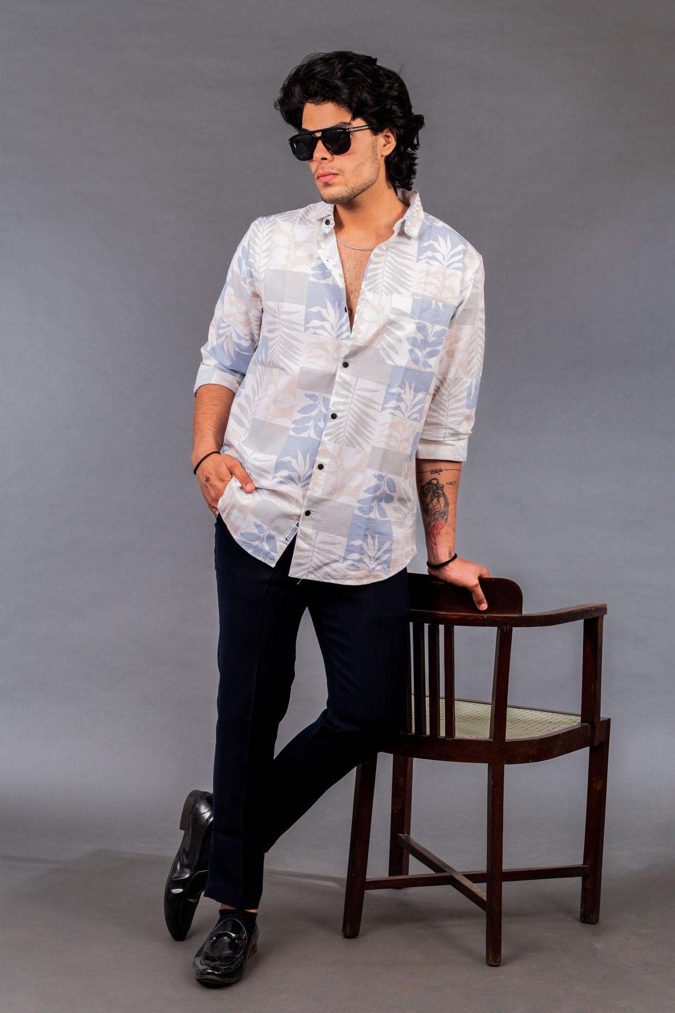 Discover effortless elegance with our Square Leaf Blue Shirt. Featuring a charming floral leaf print against a sophisticated Blue texture, this shirt is crafted from a comfortable linen blend fabric, perfect for all seasons. Its versatile design and regular fit make it ideal for seaside strolls or casual outings, offering both style and ease for any occasion.