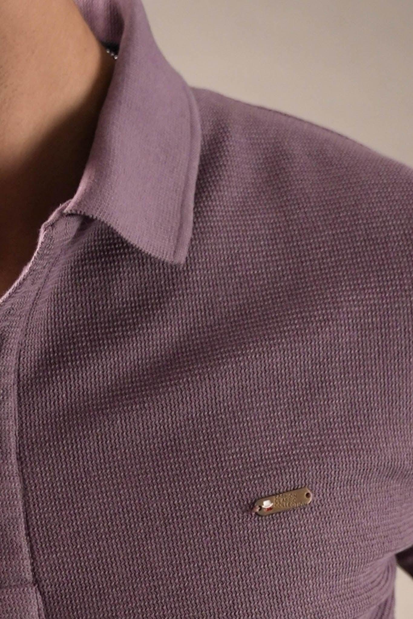Everyone needs a staple like this Textured Polo Purple T-Shirt in their wardrobe. This T-shirt is comfortable and easy to wear and includes a ribbed neck and classic regular sleeves sleeves. You can play around with styling the T-shirt in many ways.