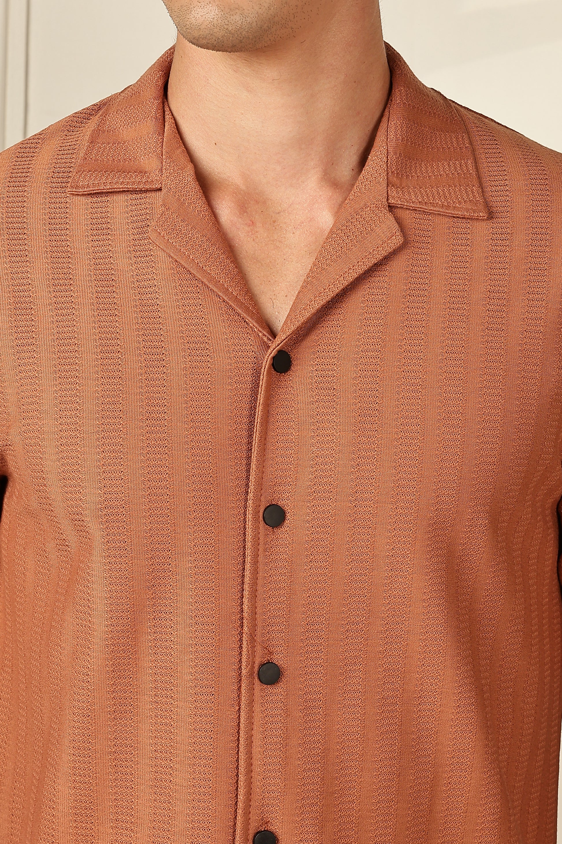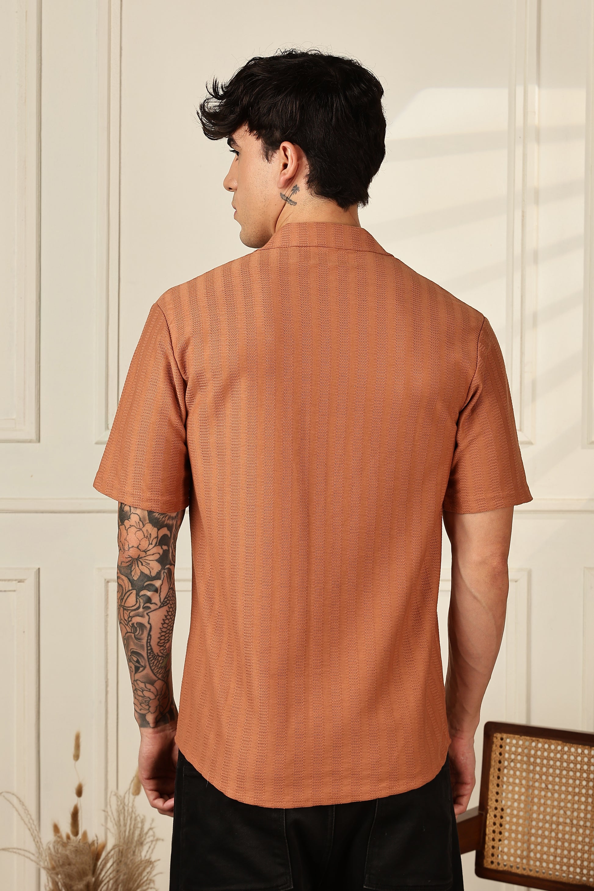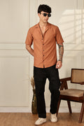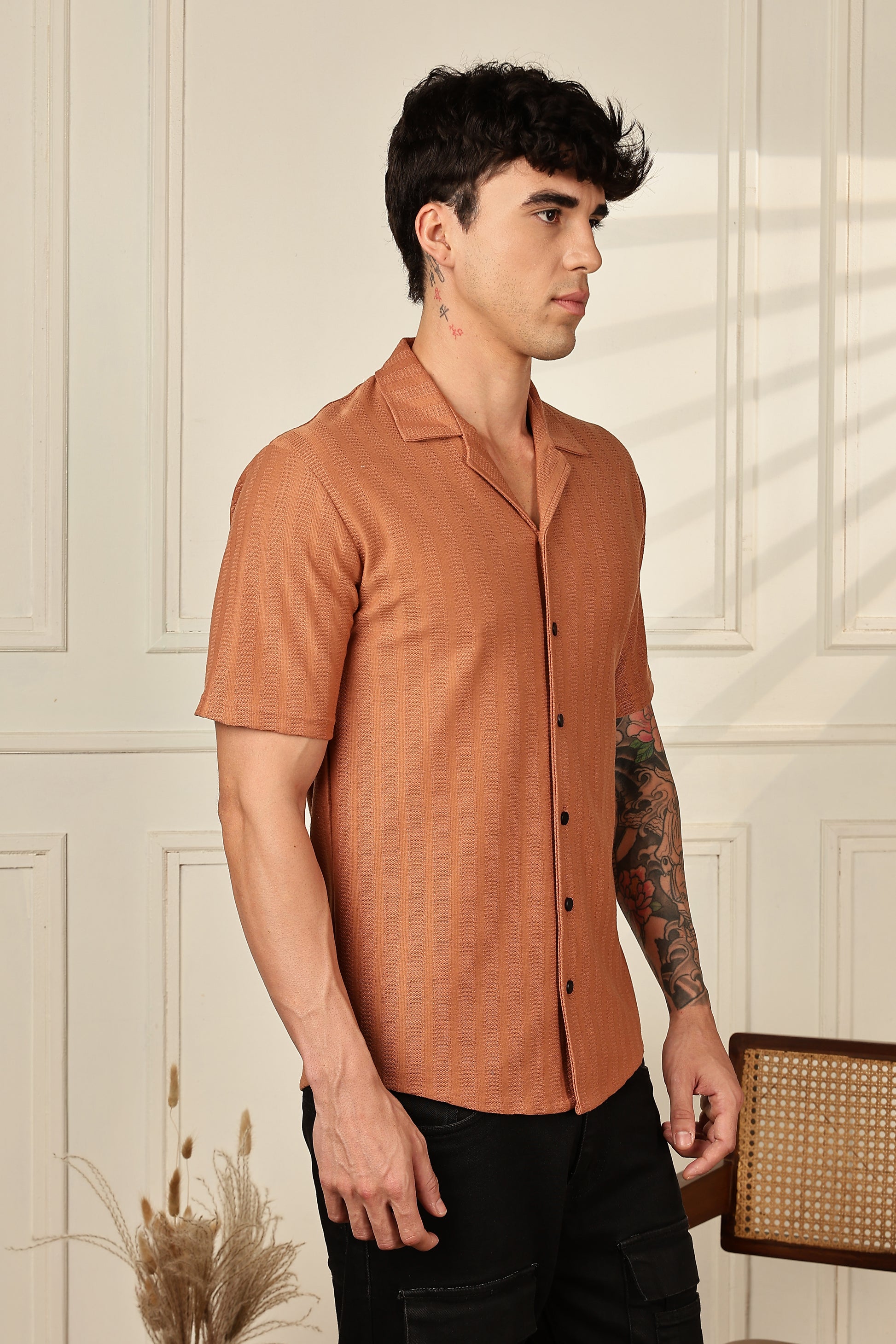 This textured half-sleeve shirt features a stylish Cuban collar and sleek button detailing, offering a relaxed yet refined look. Crafted from premium fabric, it promises both comfort and durability, while the meticulous stitching adds a touch of craftsmanship. Perfect for a casual day out or a smart-casual event, this shirt elevates your wardrobe with effortless style.