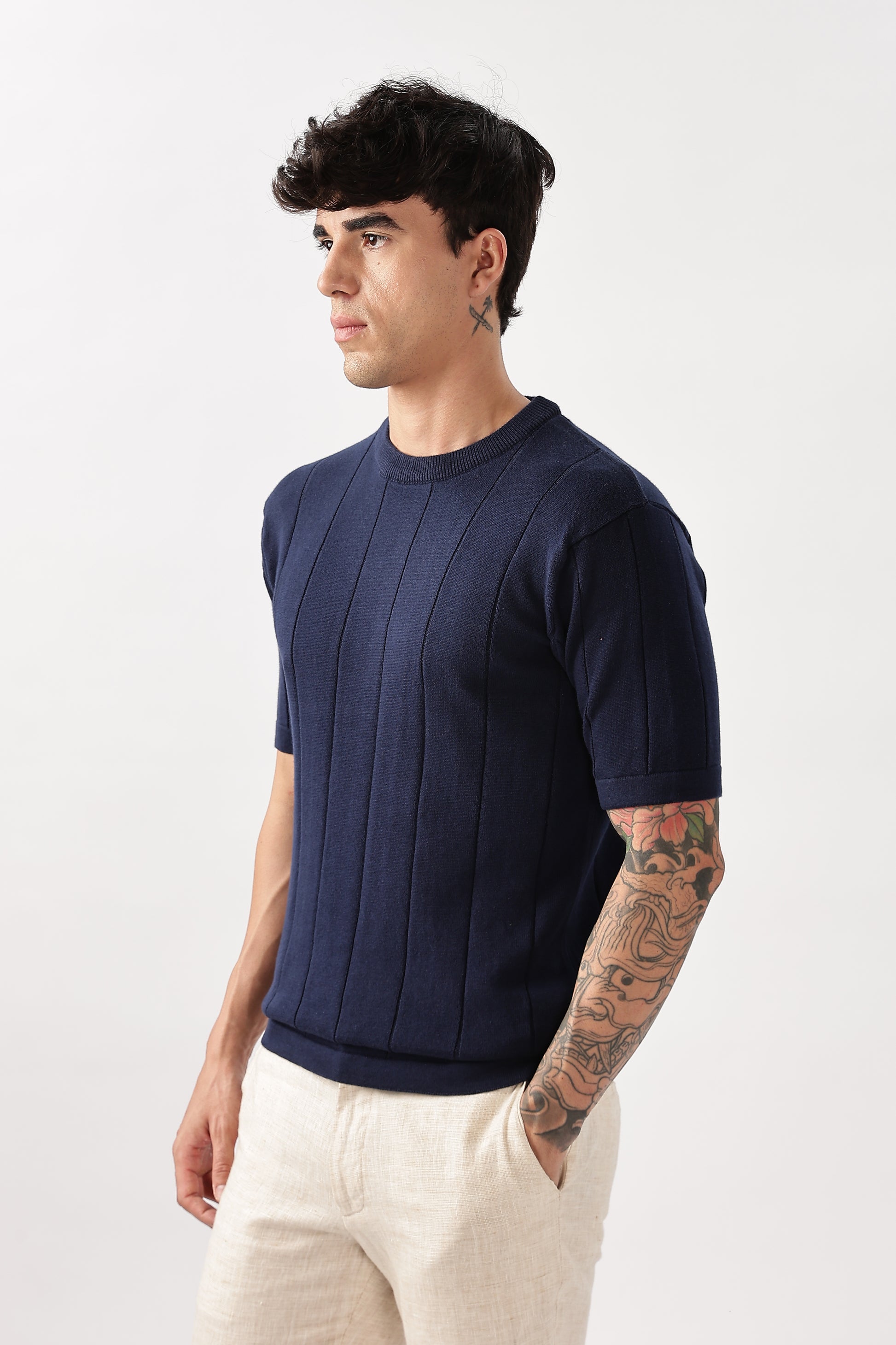 Tread - A nod to heritage style, this finely ribbed knit tee embodies understated luxury. With its tailored texture and classic silhouette, Tread is effortless elegance—made for those who value quiet confidence over loud trends.